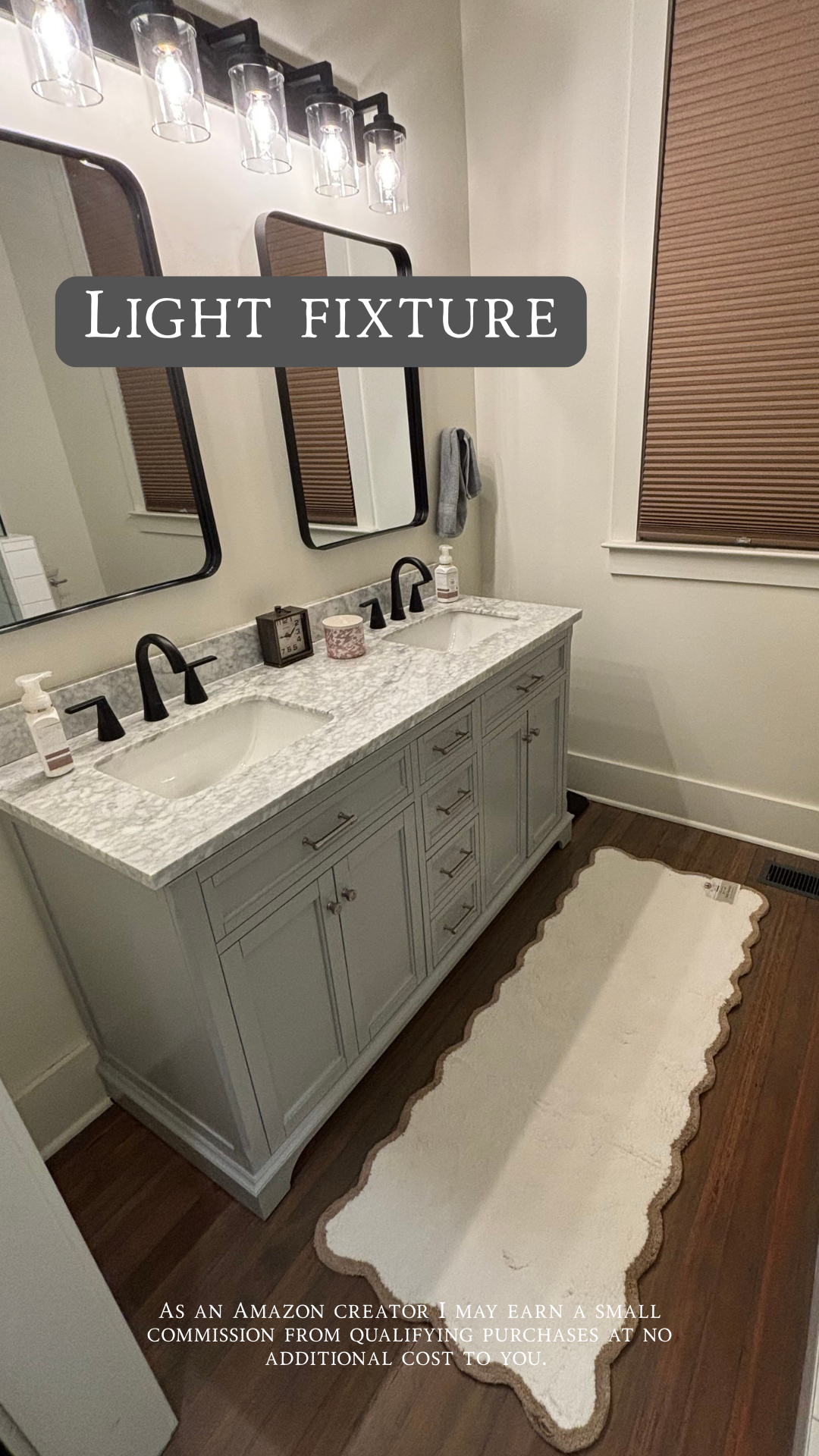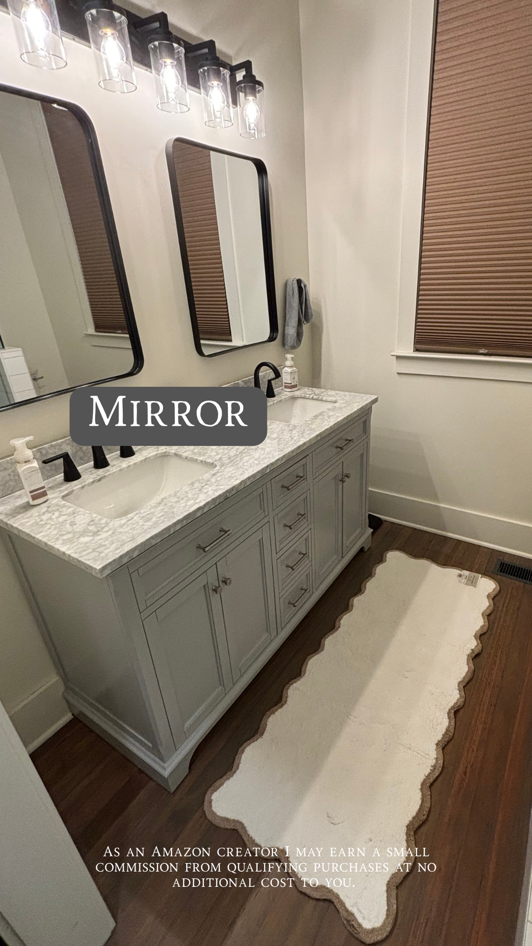 I love to keep things simple in all the ways in my life, and the bathroom mirrors were no exception. I wanted a clean look with a plain black rim, and I found exactly what I was looking for on Amazon. Simple, classic, and just right for the space.