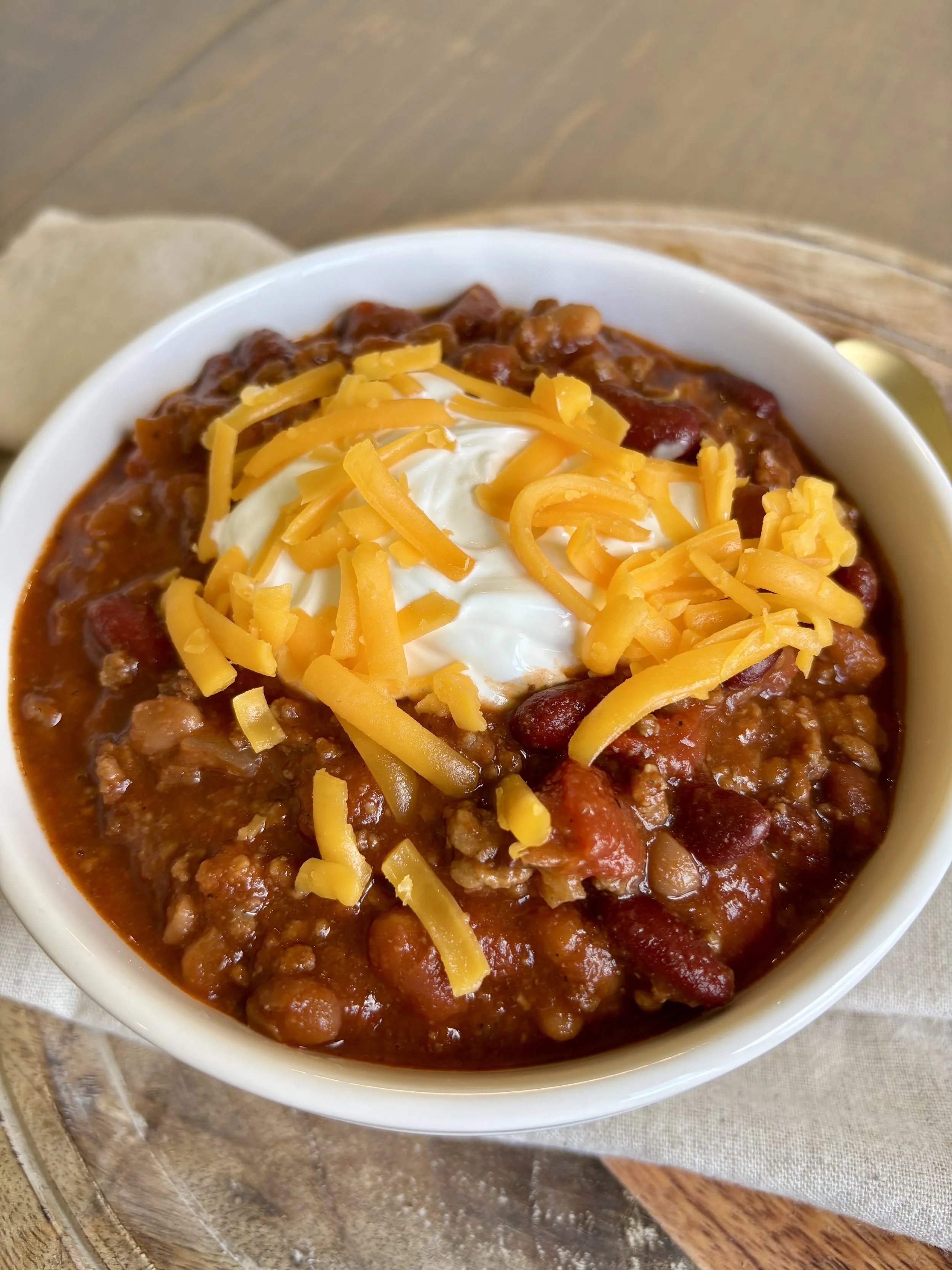 A hearty, hands-off chili packed with beef, beans, and spices—perfect for cozy nights. This recipe is featured in my Volume 1 cookbook and the new Celebrate Festive Fall with Miss Annie cookbook.