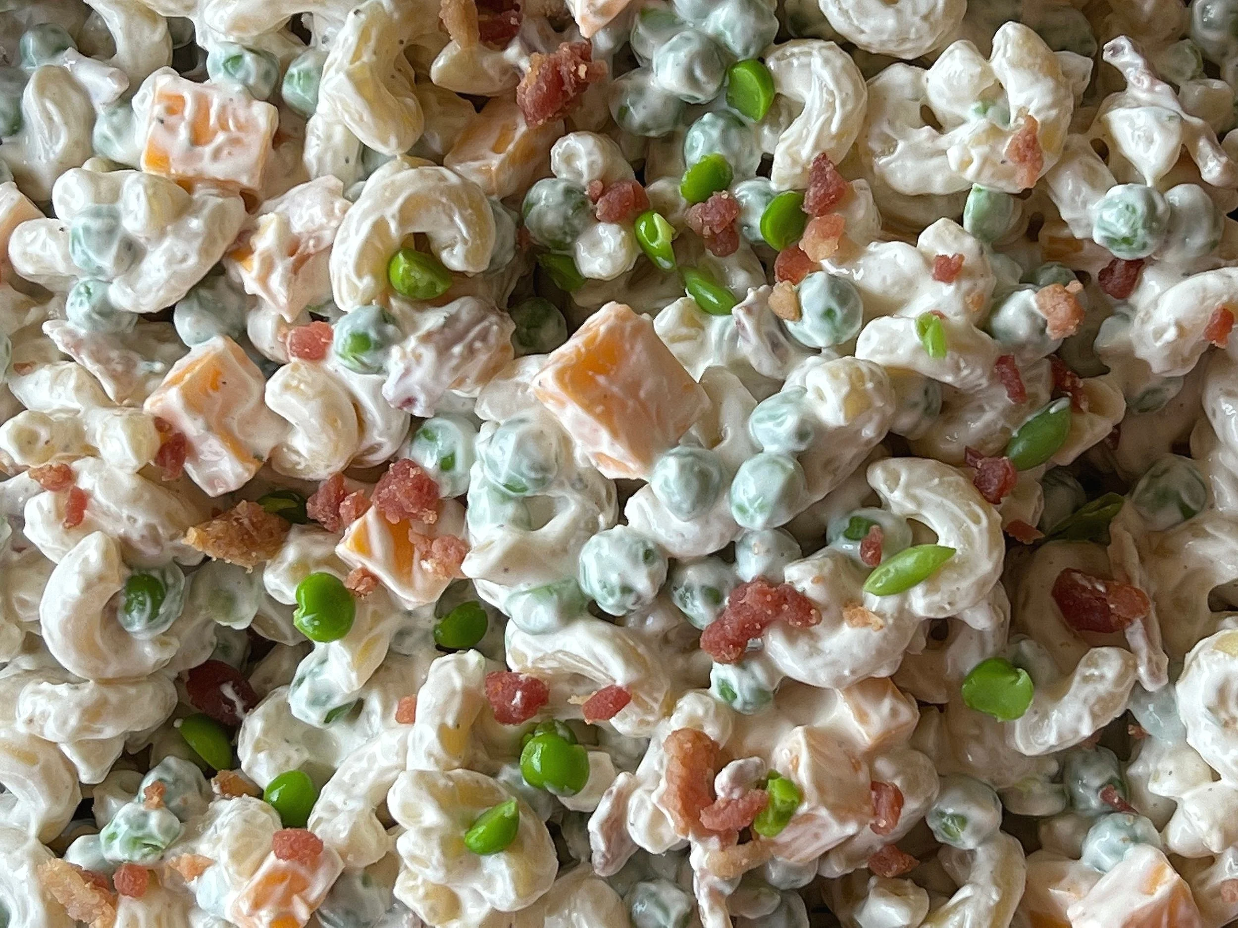 This pasta salad is perfect for potlucks and picnics. What's not to love about ranch, cheddar cheese, bacon and peas? You will love this easy recipe!