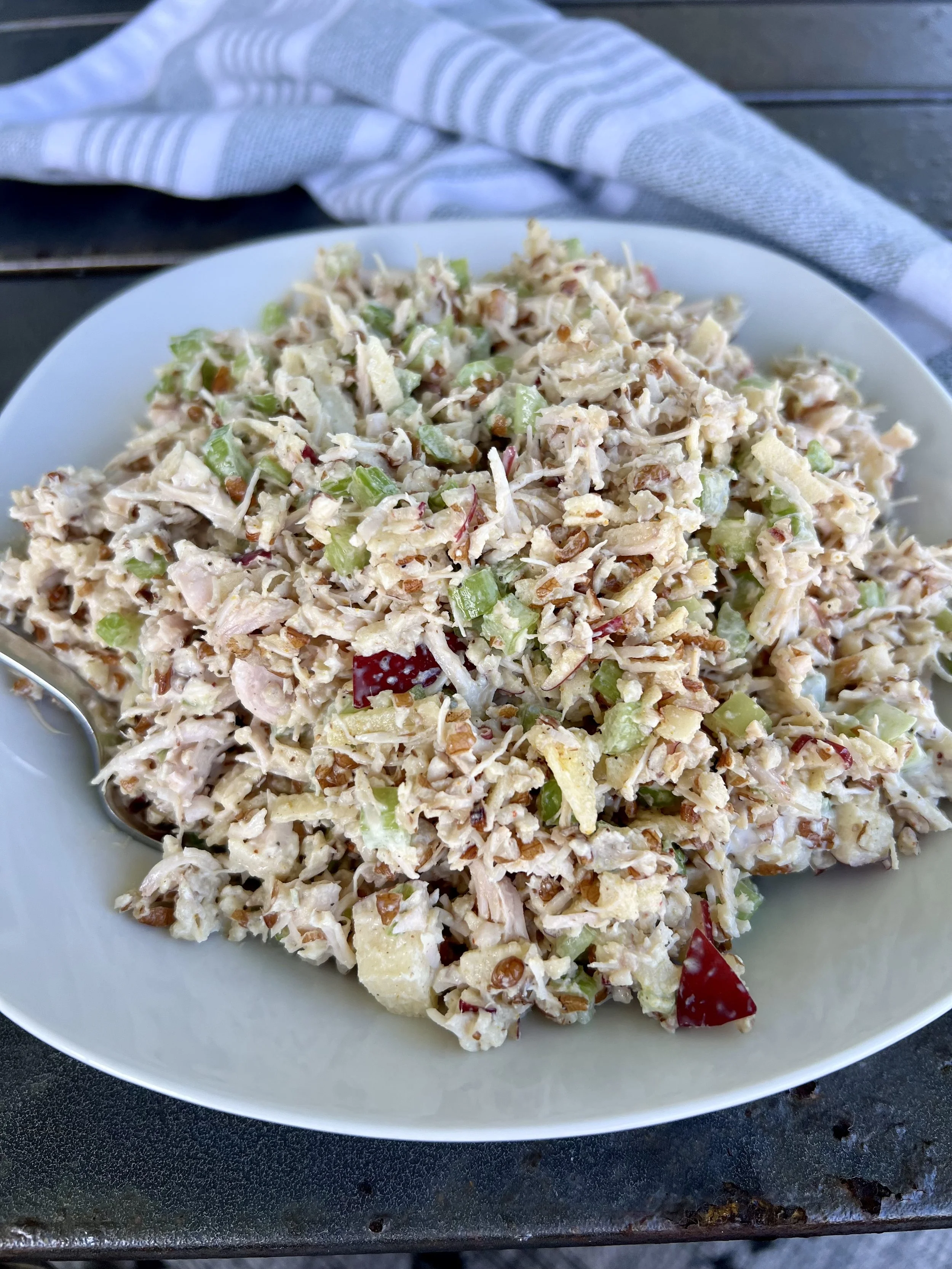 A creamy, flavorful chicken salad with a hint of curry, crunchy apples and celery, and a nutty twist--perfect for sandwiches, wraps, or crackers.
