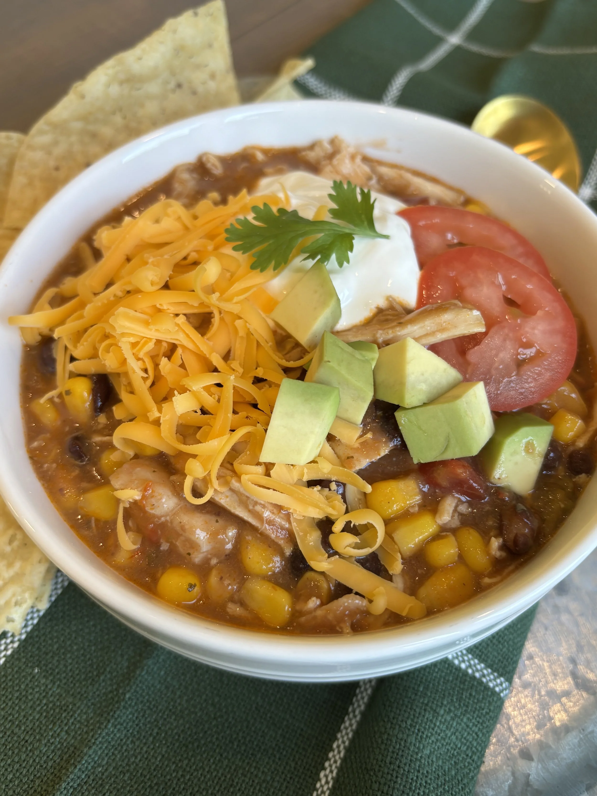 This creamy chicken fajita soup is a comforting slow cooker favorite--packed with tender chicken, beans, corn, salsa, and spices, finished with melty cheese and your favorite toppings.